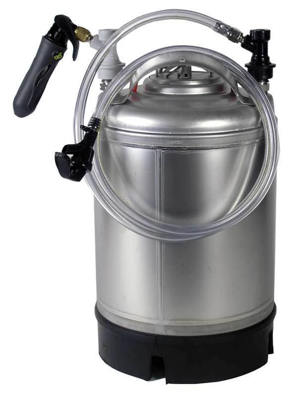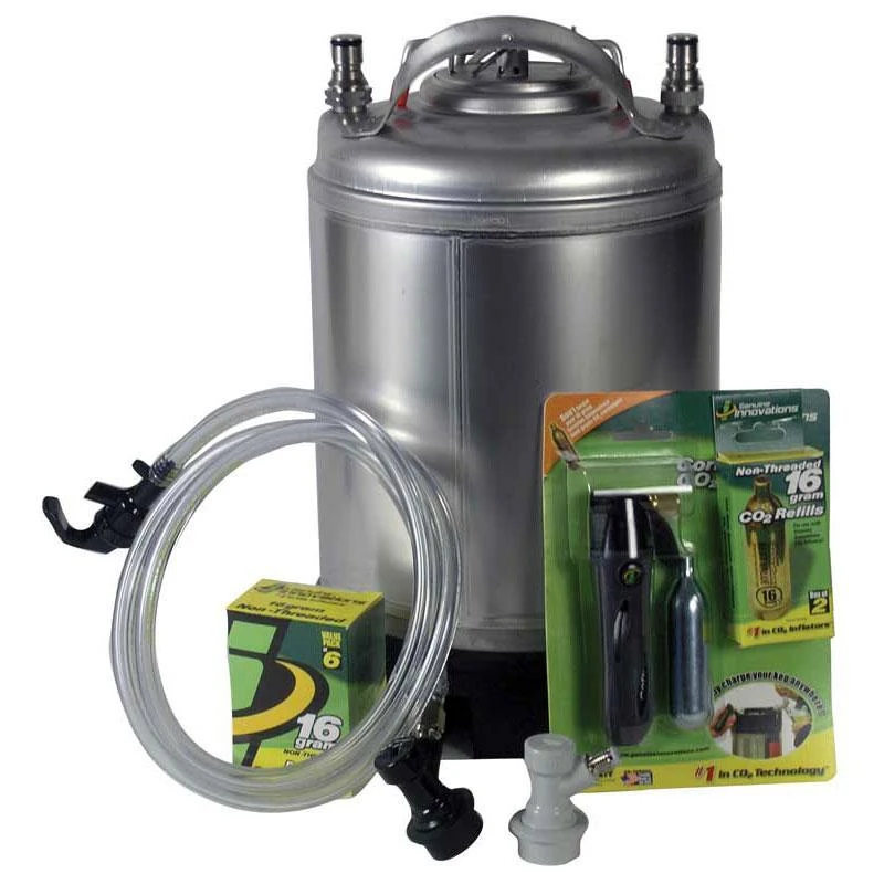 This system works by adding 3 oz. of corn sugar and waiting for the beer to naturally carbonate in the keg. After 2 – 3 weeks, the beer is dispensed using a compact CO2 Injector. This injector typically uses one 16 gm. CO2 cartridge to dispense the beer. CO2 is for dispensing only and will not force carbonate the beer in any way. 4 feet of low foam liquid line and a standard picnic tap will pour glass after glass of your favorite home brew. You’ll be everyone’s best friend when you show up at a party with 3 gallons of homebrew ready to serve. Durable corny kegs allow you to bring your brew camping, fishing, hunting or anywhere you never thought possible before. Hey NASA, how about the moon?