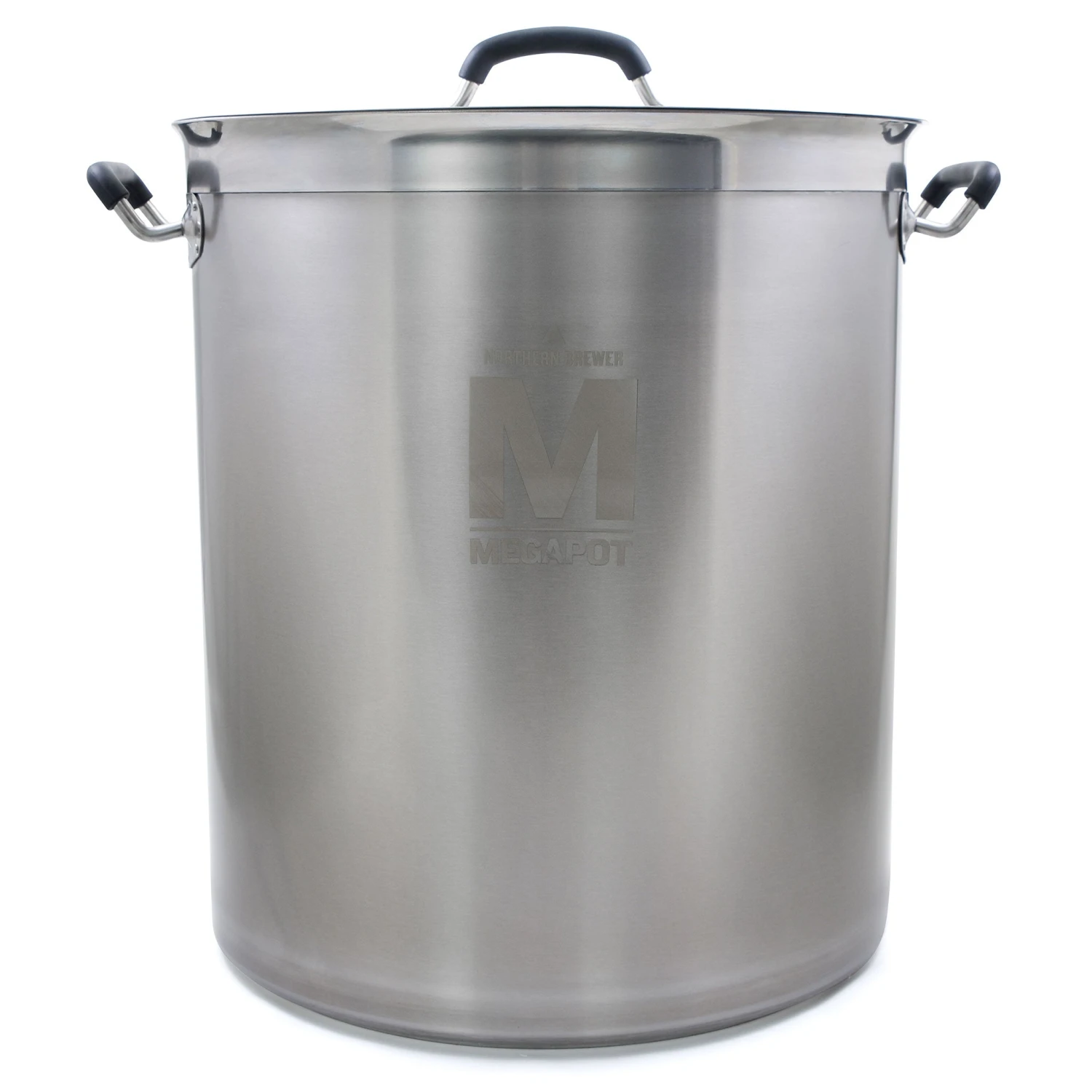 MegaPot is a masterpiece, not just another steel pot. Every detail has been thought through to enhance the beer making experience. Crafted of sturdy 304 stainless steel not only makes these kettles durable, but also resistant to oxidation and corrosion. Stay cool silicone handles on the kettle and lid serve to limit scorching! The handles are riveted in place to aid in lifting a hot liquid-filled pot. No weld failures here! A polished, flared lip stainless steel band surrounds the upper rim, reinforcing rigidity of the pot while adding a little bling.