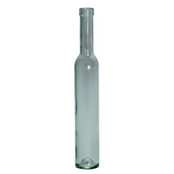 Elegant, tall clear glass bottles, perfect for icewines. Takes a #8 or #9 cork. 12 per case.