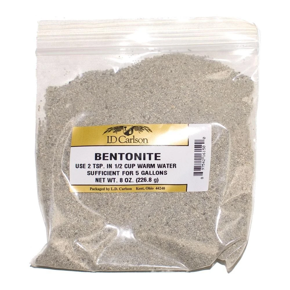 Bentonite is a clay-based clarifier that absorbs colloidal substances. Usually added prior to fermentation, sometimes during secondary to wine.