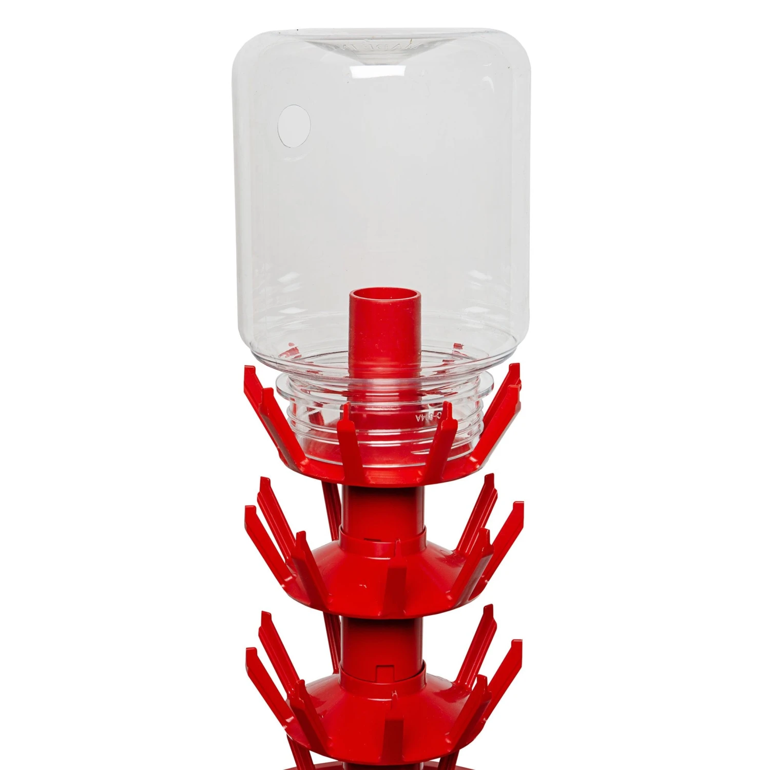 Stackable sections with sturdy arms hold up to 45 bottles upside down to drain, dry, and store. Its wide base collects drips, while the tower rotates 360 degrees for easy access to all sides of the tree. Made of durable plastic; very stable and compact.