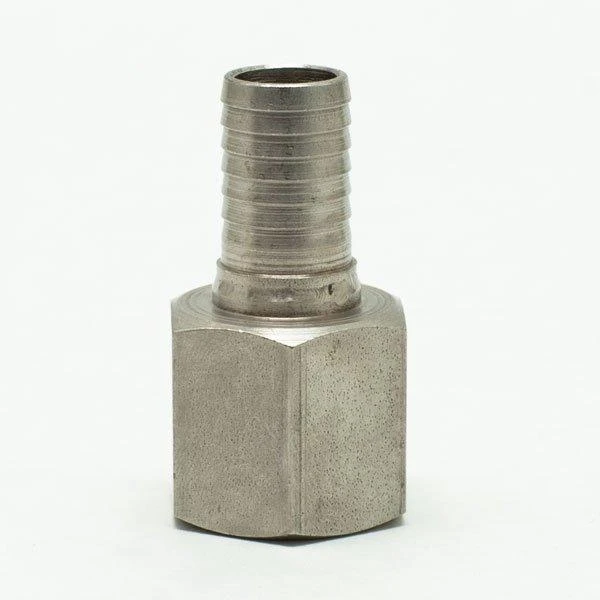Good quality stainless steel hose barb, 1/2″ female pipe thread on one side, 1/2″ hose barb on the other.