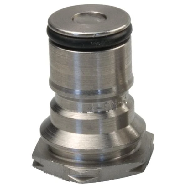 Gas side ball lock post assembly with poppet valve. Type A fits Firestone V, VI, Challenger and Super Challenger kegs.