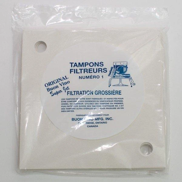 Three pack of #1 coarse (approx. 5 micron) filter pad for the Buon Vino Super Jet. For initial filtration and light clearing. For best results, filter sequentially – first with #1 pads, then #2, and finally with #3.